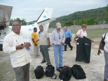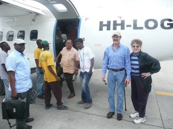 Above: Friday, flying via TortugAir's 14-seater propeller plane to Jeremie, Haiti, to take part in their District Assembly. While tickets were reserved, they were oversold so it was a relief to get boarding passes in hand. Upon arrival, we were met by ADG Robert & his wife Rotarian Rosa. View slideshow of airport and travel.