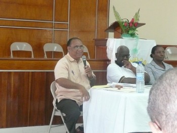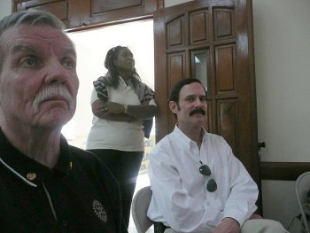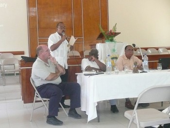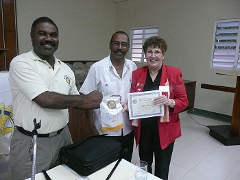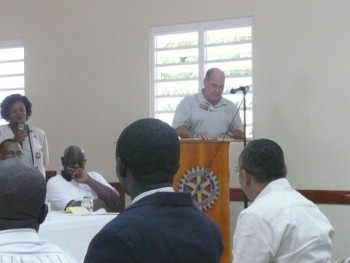 Saturday: 7:00am, we traveled to the Club Assembly held at the Mormon church. As they arrived, we met other Haitien Rotarians from around the country, and began our discussion with the Cap-Haitien Rotary Club's Raoul, through interpreter Dr. Guy. A city of 130,000 on the north coast, Cap Haitien operates with practically no water. The little it has is contaminated. View slideshow of traveling to the Assembly.