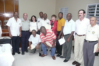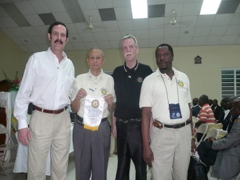 Above: just before the Assembly 6:00pm conclusion, we joined the Haitien Rotarians in receiving our Certificates of attendance from Jeremie area AG Dr. Robert and President Gaiten. Top left, our team of Brad & Earl with the Cap Haitien team of Raoul & Davilmar. Bottom, one last picture. View slideshow of Haiti's District Assembly.