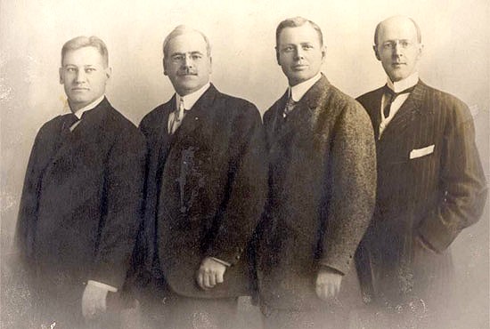 ABOVE - The first four Rotarians: Gustavus Loehr, Silvester Schiele, Hiram Shorey, and Paul P. Harris, sometime between 1905 and 1912 first general secretary. Club firsts On 23 February 1905, Paul P. Harris, Gustavus Loehr, Silvester Schiele, and Hiram E. Shorey gathered in Chicago for what would become known as the first Rotary club meeting. A second club was formed in San Francisco in 1908, and soon after, clubs began to pop up across North America. On 1 August 1912, the Rotary Club of London became the first club chartered outside of North America. The Rotary Club of Dublin, Ireland, had been organized earlier, but didn’t receive its charter until 1 May 1913. Presidential firsts Rotary founder Paul Harris wasn’t the first president of a Rotary club. That distinction is actually held by Harris’s friend Silvester Schiele, who served as the first president of the Rotary Club of Chicago. Harris deferred his club leadership duties until February 1907, when he was elected the third president of the Chicago club. Paul Harris was elected as first president of the National Association of Rotary Clubs (which later became Rotary International) in 1910. Harris is the only president to have served two terms. Other firsts: Canadian E. Leslie Pidgeon (1917-18) was the first Rotary president from outside the United States, Sydney W. Pascall (1931-32) was the first from Great Britain, and Maurice Duperrey (1937-38) was the first from continental Europe. Paul Harris Fellow recognition was established in 1957 to show appreciation for contributions, and to encourage substantial ones, to what was then the Foundation’s only program: Rotary Foundation Fellowships for Advanced Study, the precursor to Ambassadorial Scholarships. Today, the recognition acknowledges individuals who contribute, or who have contributions made in their name, $1,000 to The Rotary Foundation.