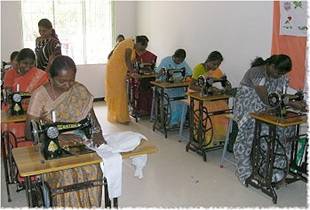 ribbon on the inauguration of a Matching Grant Project, a building called ‘Gurukulum’, which houses a sewing room. Skills learned