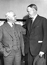 As the Rotary movement spread across America and Britain, it became a favorite target for cynical writers and social critics. One newspaper editorial opined: "The Rotary club is composed of business men. The functions of a Rotary club are summed up in one word — talk. That is about all the members of the club do. The Rotary club never takes any action. Its members simply talk, or listen while others talk." "Where is Rotary going? It is going to lunch," sneered playwright George Bernard Shaw. Rotary's most outspoken critics in the 1920s and 1930s included Shaw, Sinclair Lewis, Clarence Darrow, H. L. Mencken, and G. K. Chesterton. Mencken, the acerbic editor of the American Mercury, wrote of his contempt for Rotary's "commercial civilization." He also derided Rotarians for their habit of greeting one another by their first names or nicknames: "The first Rotarian was the first man to call John the Baptist, 'Jack,'" he scoffed. Sinclair Lewis touched on the same point in his 1920 novel Main Street but it was his 1922 novel, Babbitt, that caused howls of protest from Rotarians. In it, the title character was a bumbling middle-class small-town businessman who was a follower, whose weekly highlight was the backslapping singing camaraderie of like-minded men at his booster club. Taking their lead from such famous authors, other writers joined in the parody parade with potshots of their own. They were rarely scathing attacks, but Babbitt, especially, was such a best seller that the criticism endured for decades. By then, the word Babbitt had even entered the official national vernacular. Dictionaries started including it, with the definition in Webster's New Collegiate: "A business or professional man who conforms unthinkingly to prevailing middle class standards." When in 1934 another dictionary leaked that it was considering equating its own definition of Babbitt with Rotarian, Editor Leland D. Case of The Rotarian had had enough. One steamy August morning he took matters into his own hands and paid an unannounced visit to Sinclair Lewis' summer home in Vermont. "Who the hell're you, and what do you want?" growled the sleepy cynic as he opened the door in his blue pajamas. Case explained that he edited Rotary's magazine in Chicago and had come to find out what Lewis disliked about Rotarians. "Sit down," Lewis commanded. "First, we'll have breakfast. Then we'll talk." When they got to the discussion, Lewis stated his first objection: "I don't like their singing!" "Neither do I," Case concurred. "What else?" "Calling strangers by their first names," Lewis continued. "I visited a Rotary club near here and right away they were calling me 'Sinclair,' something I hadn't heard since I last saw my mother." Case knew that Lewis hailed from the tiny town of Sauk Center, Minnesota. He told him the story of Rotary's founder, Paul Harris, another young man from a small village who felt lonely in the big city and how using the nicknames and first names of his new friends enhanced their camaraderie. The amicable meeting lasted all morning. When Case arrived back at his Chicago office, he found a telegram from Lewis saying that their chat had "made me approve of Rotary." Case later persuaded Lewis, Darrow, Mencken, and Shaw to write for The Rotarian, and nobody ever heard a sarcastic remark about Rotary from them again.